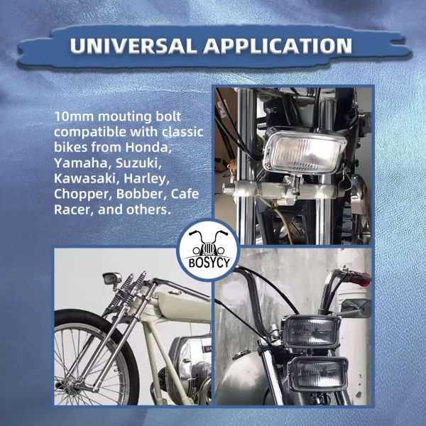 【Widely Fit】Equipped with a 10mm mounting screw, suitable for bottom-mounted old schooled lowrider bikes from Honda, Yamaha, Suzuki, Kawasaki, Harley Davidson, Chopper, Bobber, Cafe Racer, Touring, and Custom bikes, providing you with a versatile and reliable lighting solution.